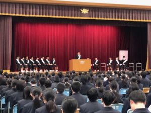 12月19日、新生徒会役員を決める立会演説会と選挙がありました。新役員には16名の2年生が立候補し、先週から朝のあいさつや教室を回ってのPRなど積極的な選挙活動をしていました。今日は体調不良で欠席がありましたが、それぞれが篠山中学校をさらに良くしたいという気持ちが表れた演説をしてくれました(欠席者は決意を代読)。選挙なので全員が当選とはなりませんが、学校を良くしたいという思いを立候補という行動に移したことだけでも立派であり、拍手を送りたいと思います。生徒会は役員だけで活動するわけではありません。生徒全員が会員なので、3年生はあと少しですがより良い学校づくりのために最後まで力を出し、1・2年生は新役員と共に来年度に向けても頑張っていきましょう。