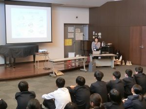 2月13日(木)、市の健康課から講師をお招きし、1年生に向けて喫煙防止教室を開催しました。短い時間でしたが、タバコが身体に及ぼす影響や病気について詳しく教えていただきました。喫煙は、特に20歳未満でタバコを吸い始めると健康被害が大きいといわれています。生徒の感想にも「タバコは体に悪いと知っていたが、具体的なことをお教えてもらったので、大人になっても吸わないようにしたい」などの声が多くあり、たばこの害について詳しく知る良い機会になりました。