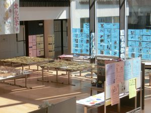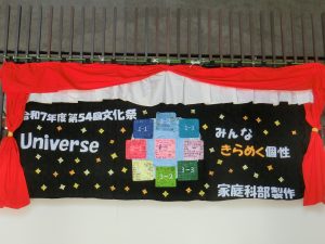 今日までの練習や準備を終え、明日(25日)はいよいよ第54回文化祭です。どの学年、クラスも合唱練習や発表に意欲的に取り組んできて、今週は朝から合唱の歌声が響き、午後は楽しそうに準備や練習をしている生徒たちの姿がありました。今日は準備や展示見学、合唱や発表の最後の練習とあわただしく時間が過ぎました。明日はよい文化祭ができそうです。展示の一部を掲載しておきます。