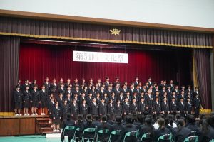 10月25日(土)第54回文化祭を開催しました。今年のテーマは「きらめけ」、スローガンは「Universe ~みんなきらめく個性~」です。今までの練習の時からそれぞれの責任や役割をしっかり果たし、クラスや学年の仲間と協力して取り組みを進めてきました。発表の本番ではその成果が十二分に発揮され、素晴らしい舞台発表や合唱コンクールとなりました。合唱コンクールはどのクラスも素晴らしく審査も難しかったのですが、最優秀賞は学年ごとに1年3組、2年3組、3年3組でした。おめでとうございます。文化祭に向けた取り組みから得たことを大切にして、これからの学校生活でも一人一人がきらめいて過ごしてくれることを期待しています。