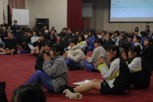 1月21日(水)、本校の研究発表会兼丹波篠山市学力向上研修会を開催しました。本校は昨年度から2年間の指定をうけて、「生徒が互いに関わり合いながら学ぶ授業の創造」をテーマに取組みを進めてきました。当日は市内各小中特別支援学校の先生方を交えて、1年生数学(少人数)、2年生保健、3年生英語の授業を公開しました。その後、これまでの取組の成果を発表し、指導と助言をお世話になってきた京都教育大学大学院の福嶋准教授にご講演をお願いしました。話し合い活動は多くの学校や授業で取り入れられていると思いますが、その目的や課題設定、方法によって成果に差が出てきます。それらを踏まえて、これからも実践を積んでいきます。