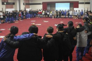 昨日、2日目の夕食(すき焼き)をお腹いっぱい食べたあとは、レクレーション大会を行いました。係の人たちが一生懸命考え、準備したレクレーション大会は、大いに盛り上がり、みんなで楽しい時間を過ごしました。最後には参加者全員で大きな輪をつくり、「WAになっておどろう」を歌いました。スキー学校のスローガンを体現したレクレーション大会でした。