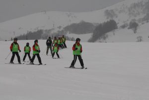 実習も3日目ともなると、みんなとても上達しており、実習開始後すぐにリフトに乗って行きました。小雪がちらついていましたが、ハチ高原のいろんなコースを滑りました。高丸山から千石平コースを滑った班もありました。最後の実習で、思う存分スキーを楽しみました。