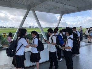 全員元気に沖縄に到着しました。天候は晴れ。汗ばむ暑さでした。昼食後にひめゆりの塔と記念館で講話を聴いて見学。そのあとは平和祈念公園に移動して、平和セレモニーを行いました。貴重なお話を聞き、展示も熱心に見学する姿があり、平和についてしっかり考えることができました。その後、予定通りホテルに到着しています。